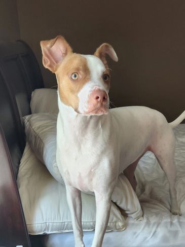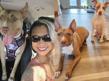 Journey was rescued June 2022 from Paw Prints Hearts Animal Rescue. He was a little over one and his 1st year he was not properly socialized with people or other dogs. Thanks to Larry at Helpmydog ofTampa, we made a lot of progress. He has some long term psychological issues from his previous family, but we work with him everyday to help him grow into the best pup he can be be. He is also a chihuahua pittie mix.